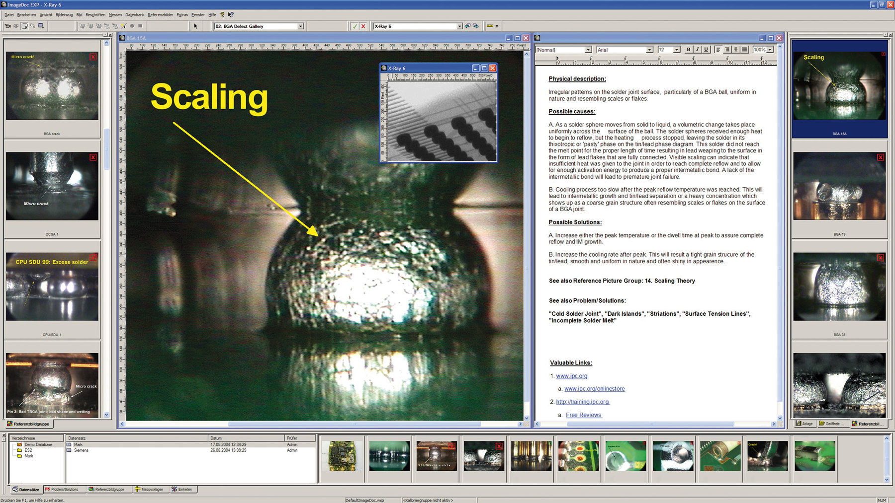 Professional inspection software with database function. Includes reference image and problem solution database. Inspect - Categorize - Analyze - Document