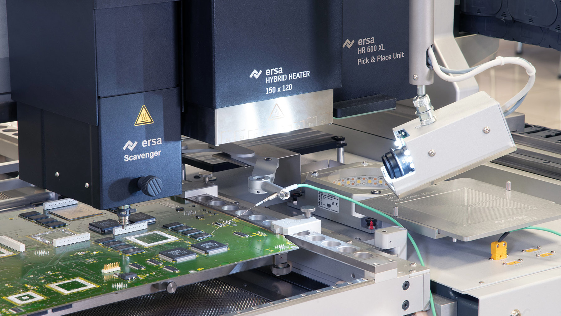 - Automated component placement as well as soldering and desoldering processes