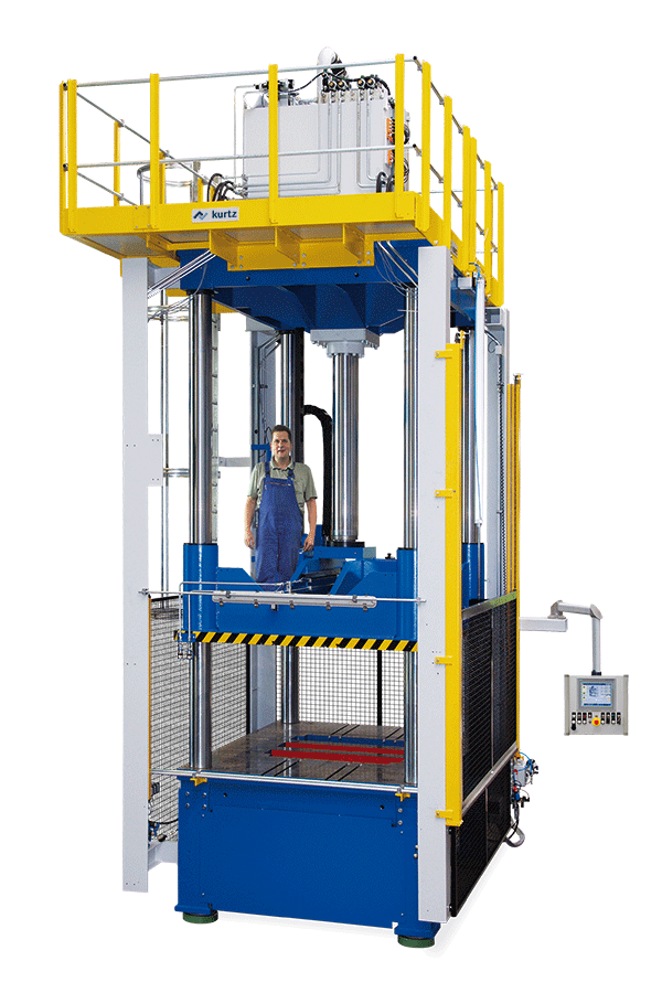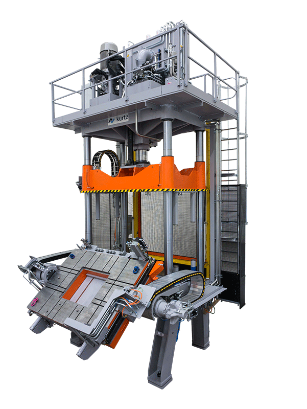 Kurtz benefits from its accumulated know-how in the construction of trimming presses and GIGA low-pressure casting machines in the design and building of GIGA presses. In addition to fast and powerful hydraulics, the main focus is on the software. The tool protection developed by Kurtz has proved its worth – and is especially applicable to GIGA presses. This is because damage and failure of large trimming tools are even more painful than is already the case with conventional tools. We currently have inquiries for presses for installation next to high pressure machines with a clamping force of up to 12,000 tons. The requested cutting force is 400 tons.