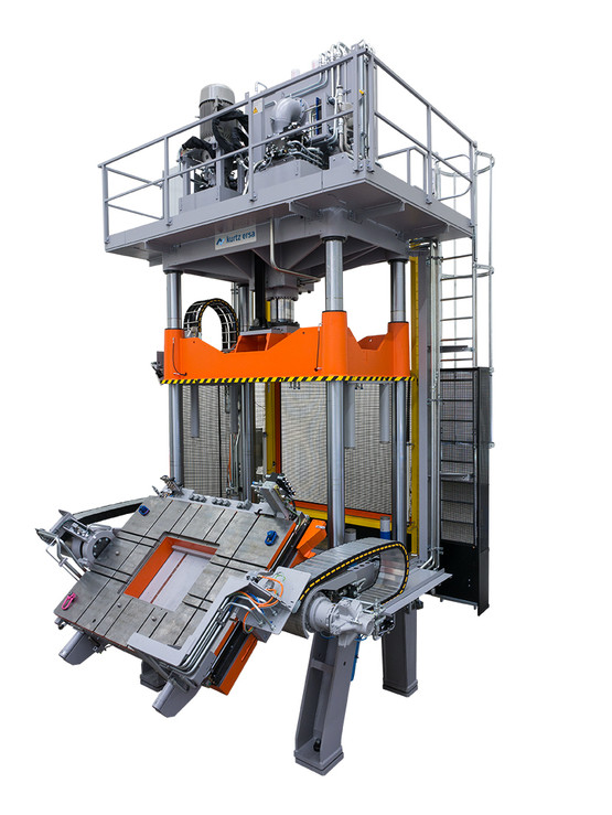 The newly developed wizard simplifies tool changes - the operator is guided step by step through the change process via the visualization. The innovative, user-friendly, web-based software interface enables machine analyses for both process engineers and maintenance personnel. Using a server-client solution, multiple users can access the machine simultaneously, view data, and operate the machine via tablets or other devices. To ensure high availability of the Kurtz KPS 2000/25-12 SKT press, the "Condition Monitoring" option allows the condition of the press to be monitored at any time in order to detect possible downtimes or failures at an early stage and plan the resulting maintenance work. Numerous sensors and monitoring devices are attached to the process-relevant assemblies and components in order to call up the respective status of the component via software. Examples of this are leak detection, filter service life, pressure monitoring, and wear indicators on the tool.