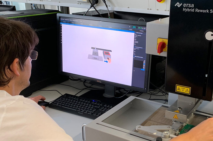 In order to be able to solder very small and complex components like these professionally, TH Aschaffenburg was looking for a suitable system and found it with Ersa. The HR 500 offers an entry into prototyping and professional component repair. Components from 1 x 1 mm to 50 x 50 mm edge length can be placed and soldered or desoldered with ease. If required, equipped sample assemblies up to 70 x 70 mm can be completely remelted - comparable to a reflow line process.