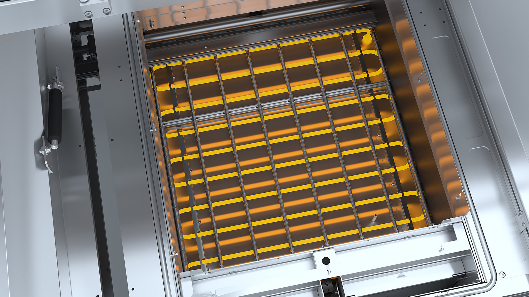 - Matrix heating system: The preheating system of the VERSAFLOW FIVE is designed as a matrix. With this innovative heating system, the infrared emitters of the heating surface can be divided into six separate segments that can be controlled individually.