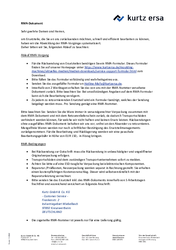 Reliable filling of the mold is the basic prerequisite for efficient molded part production. Kurtz B-JET blue filling injectors ensure a fast filling process with a uniform filling level and are therefore decisive for the quality of the molded part. For your inquiry, please use the PDF "Kurtz filling systems" from the download area, fill in your preferences on page 2 and send it to service-kurtz@kurtzersa.de