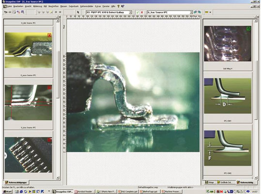The "Focus Fusion" image processing function in ImageDoc EXP allows you to create a complete image with continuous depth of field from several individual images with different focus levels. Thanks to Focus Fusion, inspection results can be documented in a single image. The image shows the inspection of a ball grid array placed in solder paste before reflow.